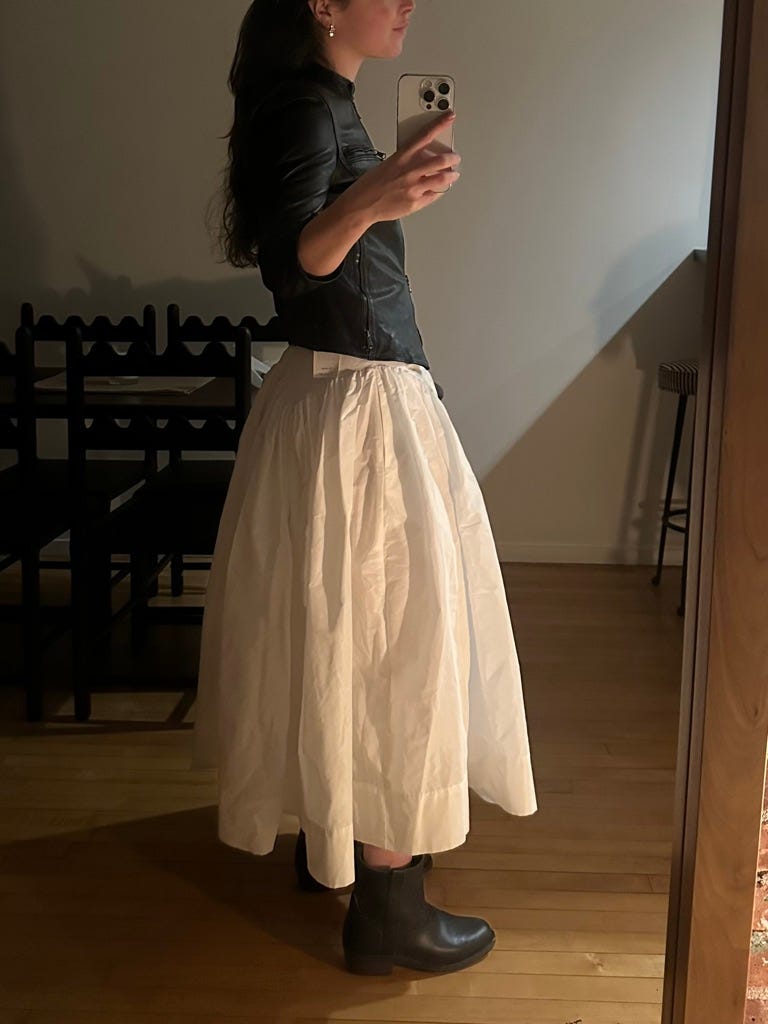 Don’t sleep on a long white skirt. I have two that I love. I especially love pairing them with a little jacket. They’re deceptively easy to style, and you end up looking very put-together with minimal effort.